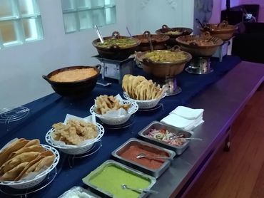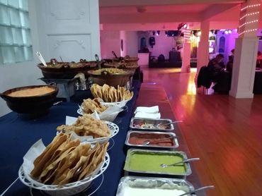 DESDE $199.00 POR PERSONA A PARTIR DE 40 COMENSALES DOS HORAS DE SERVICIO. TENEMOS PAQUETES COMPLETOS QUE INCLUYEN MÚSICA DJ, SALÓN, MESEROS, ANIMADOR CINCO HORAS DE SERVICIO DESDE $550.00 P/P, CIEN COMENSALES COMO MÍINIMO.